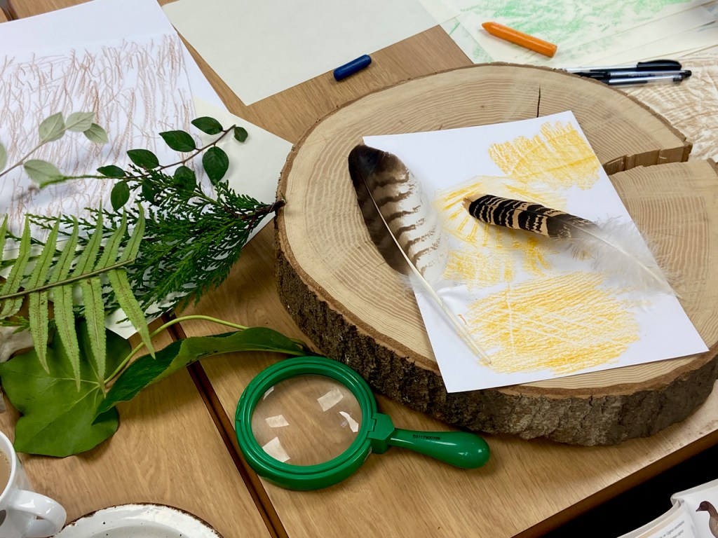 In these sessions we brought the outside by drawing inspiration from natural objects, plants and flowers. Now that we are moving into March, there’s the possibility that we can be based outside again (fingers crossed!).