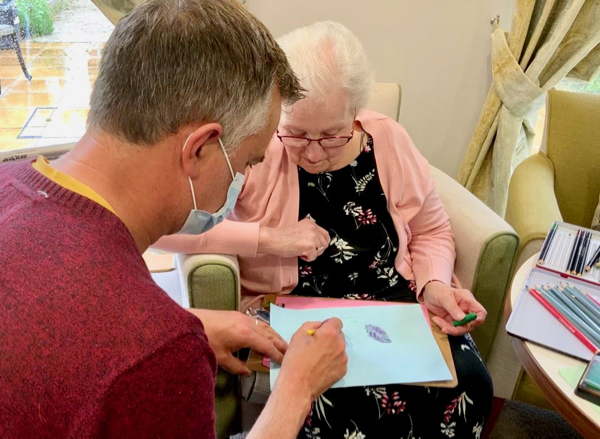Thanks to Activity Coordinators Alex and Gini, for supporting our sessions at Goodson Lodge, and for sharing their photographs of the sessions with us for this blog post. Thanks also, to Artist Rachel Heard who is joining the Celebrating Age Wiltshire team as a Trainee Project Artist, and who joined us for this session.