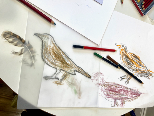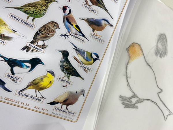 The first Noticing Nature session of the year was a little bit different to usual, a one-off workshop using art to help us think and talk about favourite garden birds.